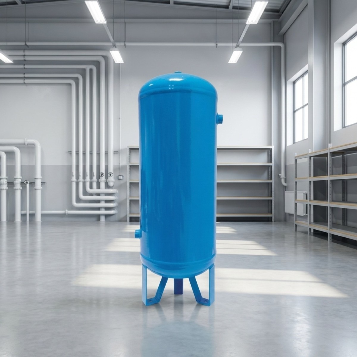 Huom! Kuvassa näkyvät hanat, painemittari ja muut liitännät eivät sisälly paineilmasäiliön toimitukseen.