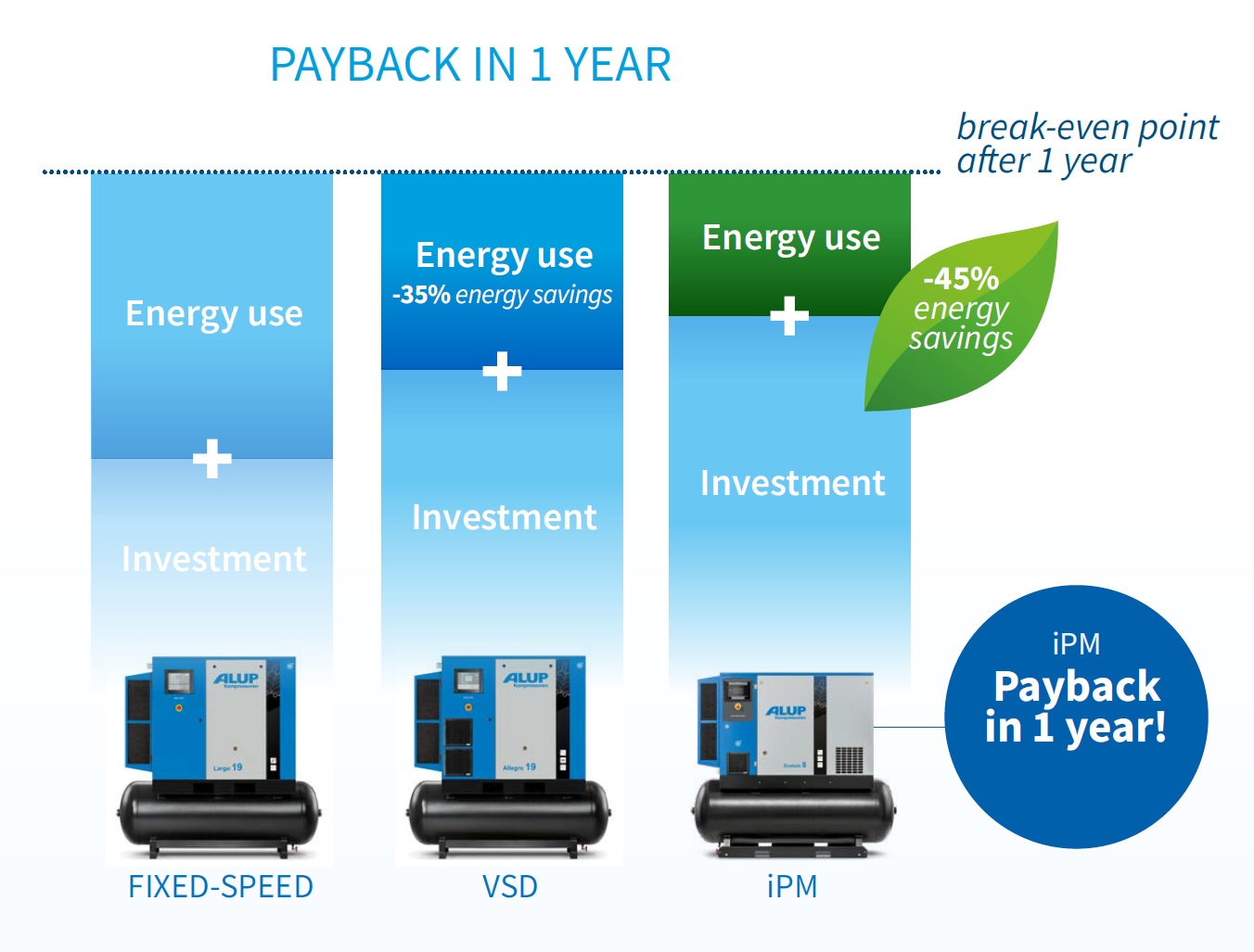 Energiakulu kuni 45% väiksem – asenda vana kompressor sagedusmuunduriga kruvikompressoriga ja säästa märgatavalt energiakuludelt.