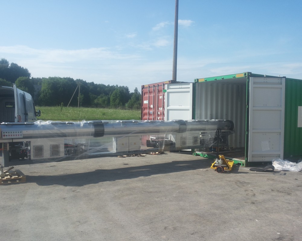 Kokku saabus neli 12m merekonteineri täis tootmisliini seadmeid ja lisaks mitmeid üksikuid seadmeid teistelt tarnijatelt.