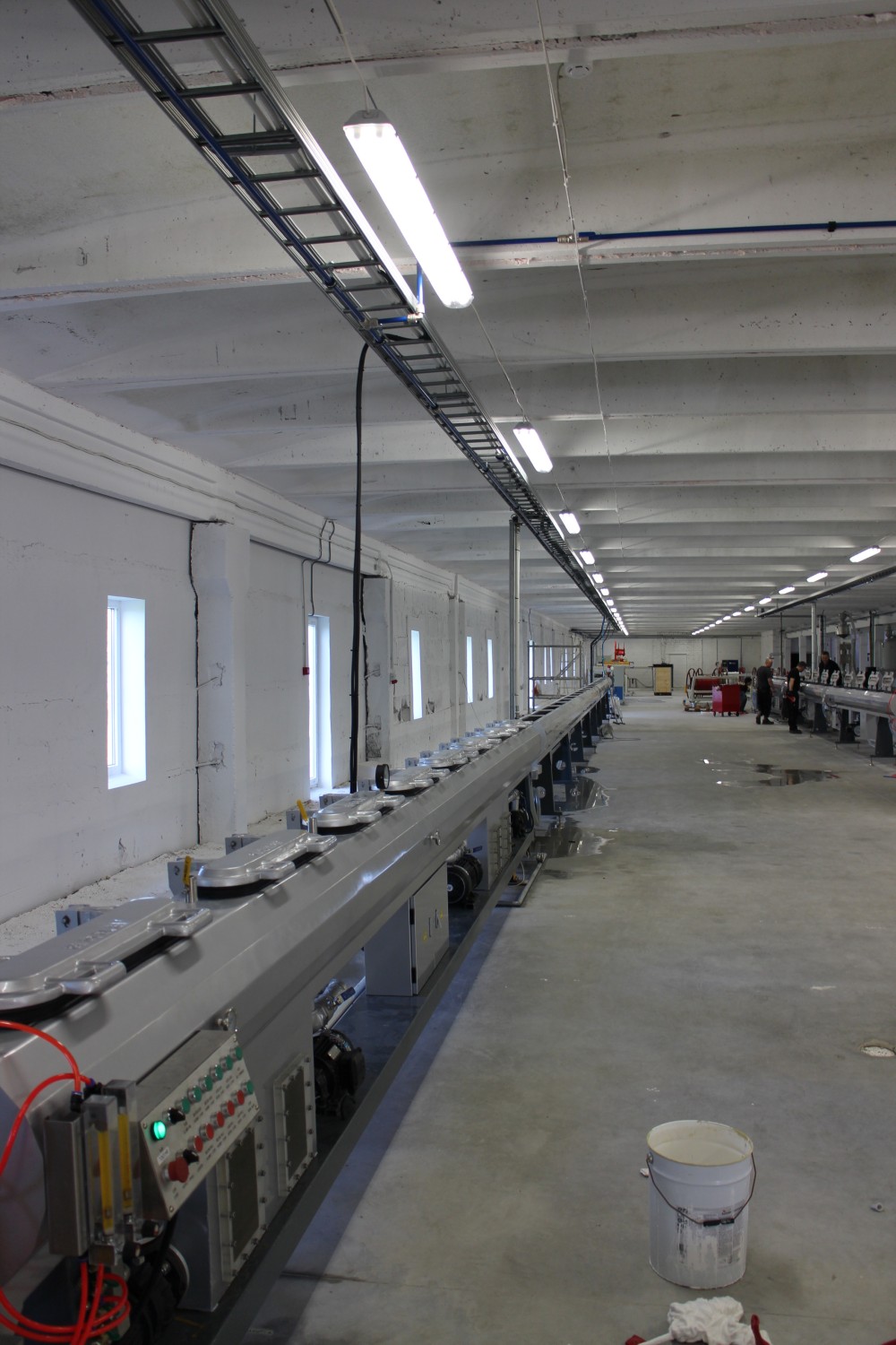 Esmalt seadme tootja juures vaadatud kliendiga kõik seadmed üle ning selle põhjal planeeritud kogu Eesti tehase lõplik masinate asetus koos teiste vajaminevate seadmetega. Enne tootmisliinide saabumist paigaldatud meie poolt kõik vajalikud kaabliredelid, teostatud seadmetega seoses kaabeldus, suruõhutrass koos kompressoriga ning lisaks tootmisliini jahutustorustik koos jahutiga. Meie poolt teostatud kõik vajalik, mis tootmiliinide käivituseks ja kasutuseks tarvis.