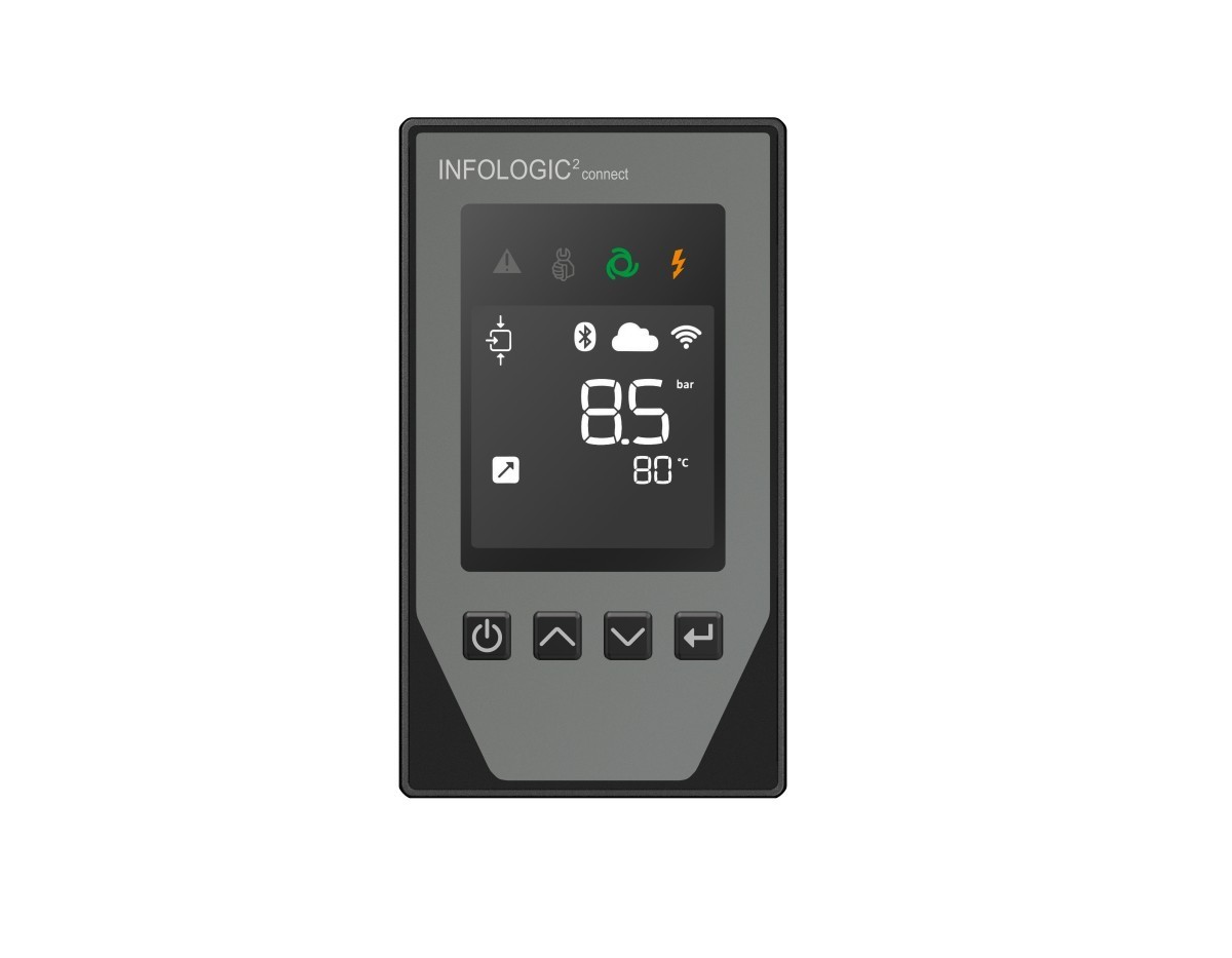 - Kompressoril on INFOLOGIC² Connect tipptasemel juhtpult, kust on võimalik kasutajal lihtsalt muuta elementaarseid tööparameetreid nagu kompressori töörõhkude vahemikku. Lisaks juhtpulti on integreeritud ICONS nutikas ühendus süsteem, kuvab tulevast hooldust, võimalike rikete puhul konkreetseid veateateid, töötunde, õlitemperatuuri ja palju muud olulist infot.