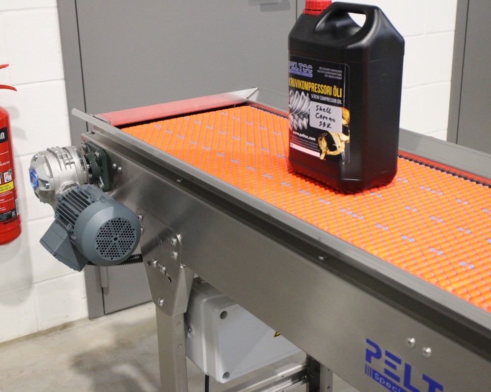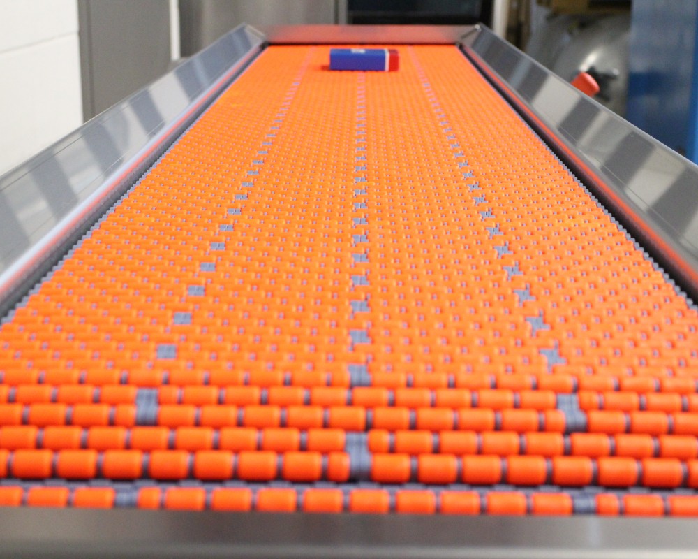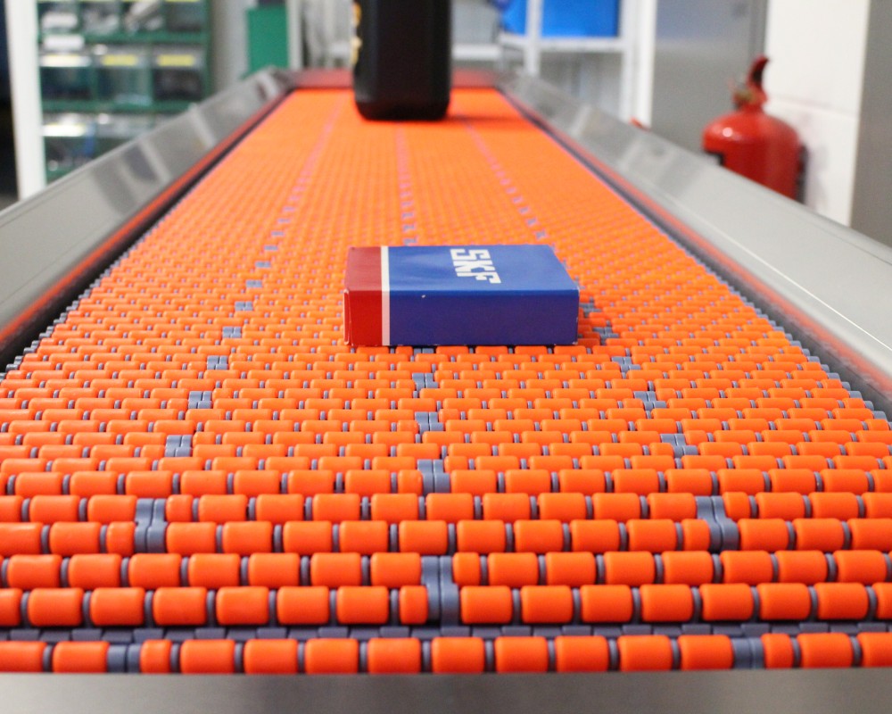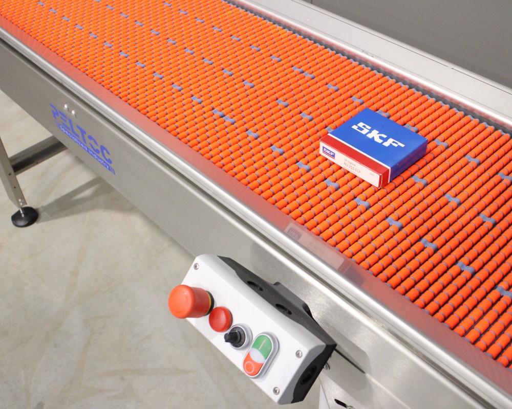 Kuljettimessa käytetään matalan kitkakertoimen omaavaa rullahihnaa, joka vähentää tuotteiden aiheuttamaa kuormitusta ja varmistaa niiden tasaisen ja vakaan liikkeen. Pienen kitkan ansiosta tuotteet liukuvat hihnan pinnalla kevyesti ja varmasti.