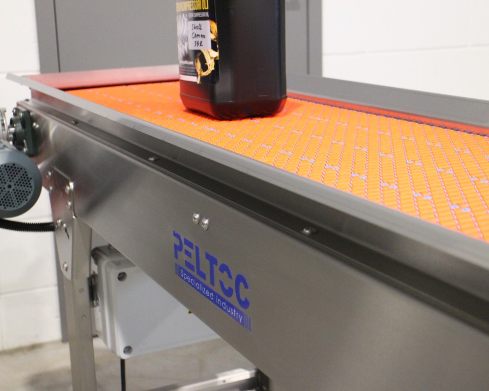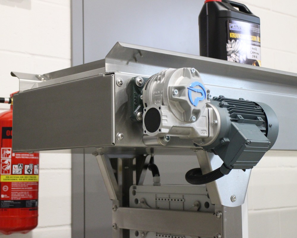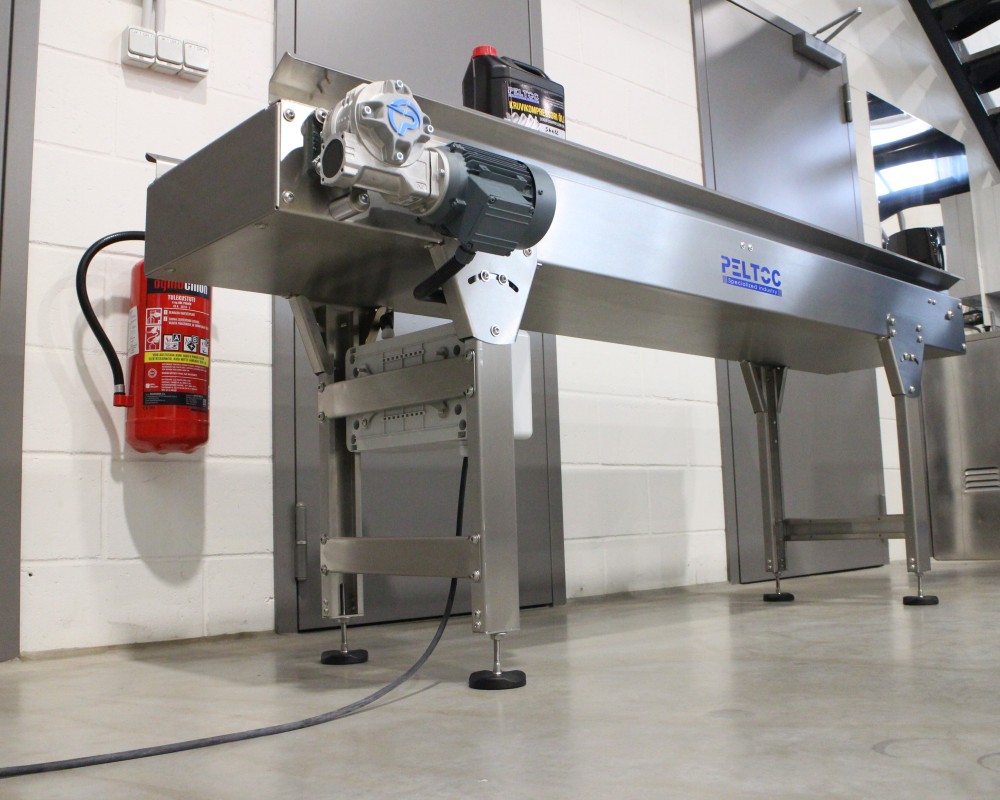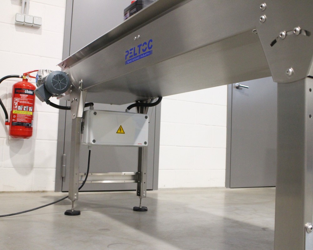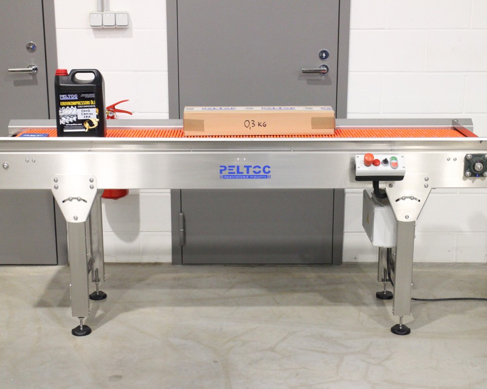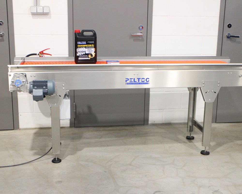 Kuljetin-keräyspöytä on valmistettu ruostumattomasta teräksestä, koska se sijoitetaan ympäristöön, jossa se voi joutua kosketuksiin erilaisten kemikaalien kanssa. Kuljettimen nopeus ja kaltevuuskulma ovat säädettävissä.